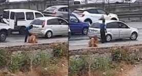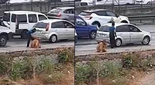 Yol kenarında kemerle darp etti vatandaşlara tehditler savurdu o anlar kamerada