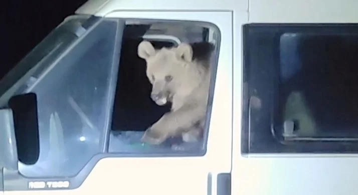 Bitlis’te aç kalan ayılar minibüse girip yiyecek aradı!