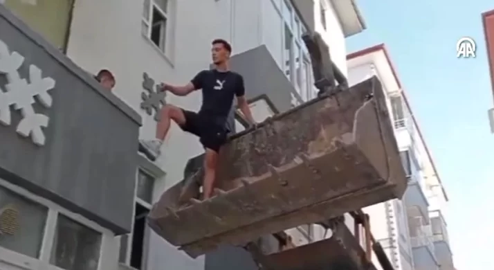 Malatya’da bir çocuk ağır hasarlı binada mahsur kaldı