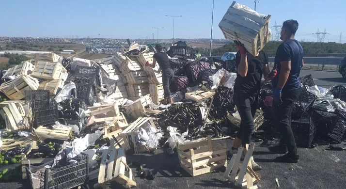 İstanbul’da sebze yüklü TIR devrildi! Sebzeler yola saçıldı