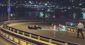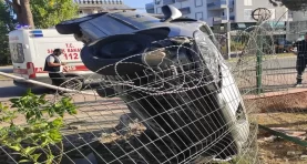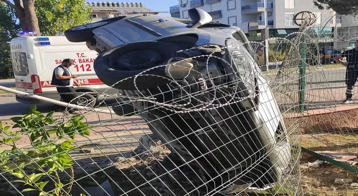 Aydınlatma direğini devirip devrilen arabasını bırakıp kaçtı!