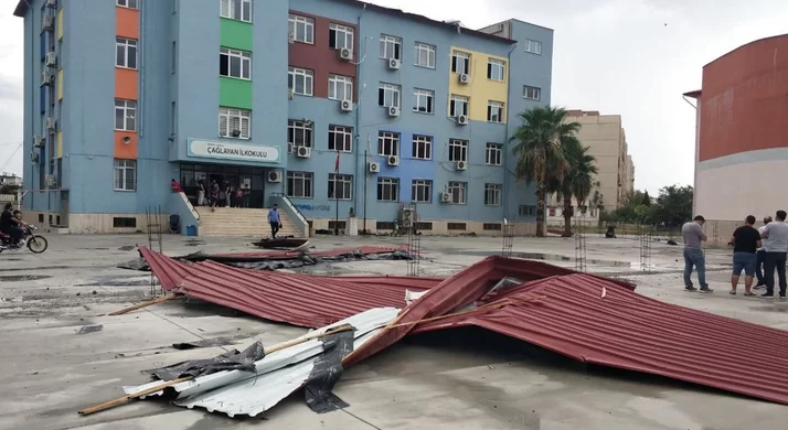 Mersin’in Tarsus ilçesinde Okulun çatısı uçtu!