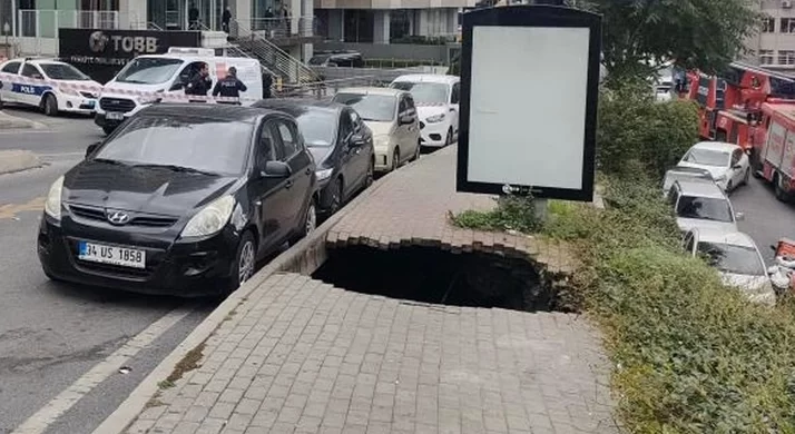 Şişli’de inanılmaz olay! Kaldırım çöktü kadın içine düştü
