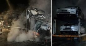 Dünyaca ünlü markanın sıfır elektrikli otomobilleri alev alev yandı