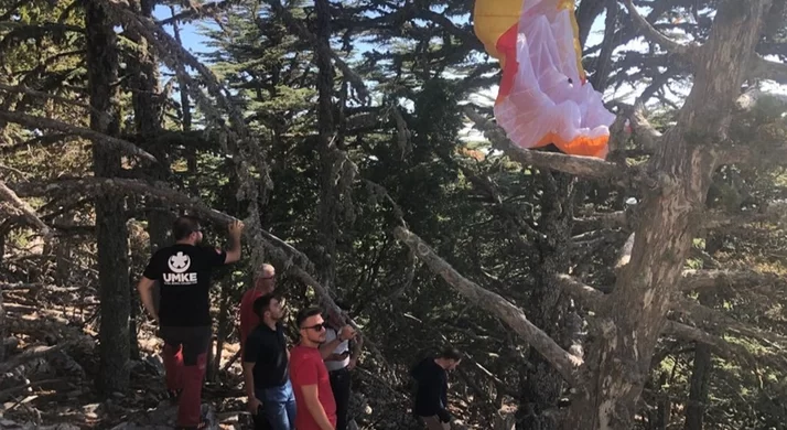 Fethiye’de yamaç paraşütü ağaca dolanan Rus pilot kurtarıldı!