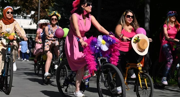 Başkentte kadınlar süslenip püslenip pedal bastı