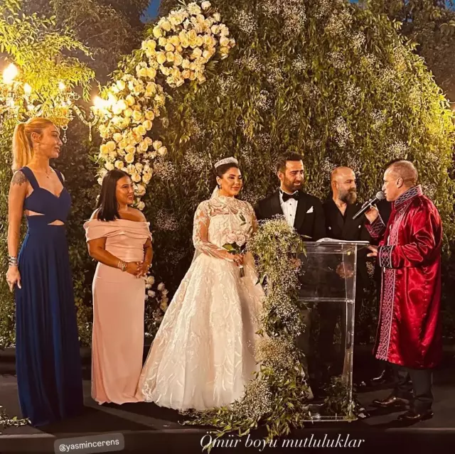 Bir otelde yapılan düğünde gelin 3 gelinlik giydi. Nikah töreninde dantel detaylı giyen Yasemin Ceren daha sonra straplez model gelinlik tercih etti. Ceren düğün sonrası yapılan partide ise kısa bir gelinlik tercih etti. Çiftin nikah şahitleri başarılı oyuncular Erkan Avcı ve Taner Ölmez oldu. Ece Dizdar, Mehmet Özgür ve Barış Arduç da çiftin mutlu günlerinde yalnız bırakmadı. Geline gösterişli bir altın kolyenin takıldığı düğünde paralar da havada uçuştu. Taner Ölmez’in sahneye gelerek oynadığını gören Ferit Kaya, eşi ve arkadaşının başından aşağı para yağdırdı.