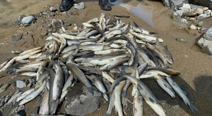 Samsun’da, Devlet Su İşleri (DSİ) tarafından bir akarsu üzerinde yapılan ıslah ve bent projesinde suya karışan çimento, binlerce balığın telef olmasına yol açtı.