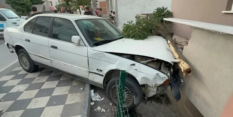Kontrolden çıkan otomobil, park halindeki bir araca, 2 elektrik direğine ve daha sonra karşı şeride geçerek bir apartmanın balkonuna çarptı.