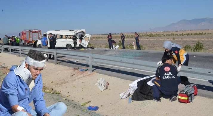 Karaman’da minibüsün devrildiği kazada 1 kişi yaşamını yitirdi, 10 kişi yaralandı.