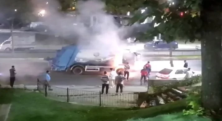 İstanbul Sultangazi’de seyir halindeki çöp kamyonu alev alev yandı. Yangın itfaiye ekiplerinin müdahalesi ile söndürüldü.
