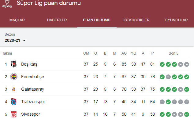 40. Hafta Puan Durumu: