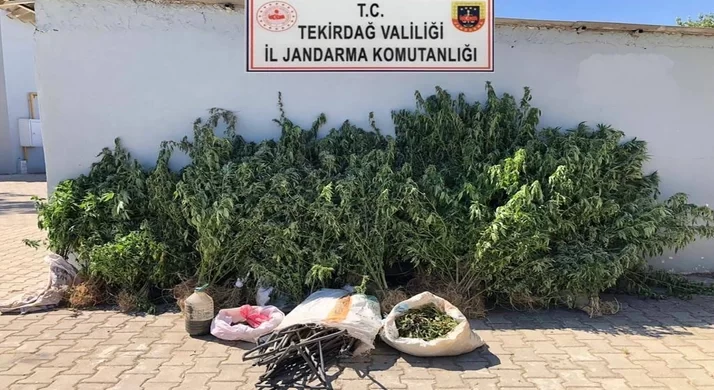 Tekirdağ Şarkoy ilçesinde jandarma ekiplerinin yaptığı operasyonda 514 adet kenevir bitkisi ve 1 kiloya yakın uyuşturucu madde ele geçirildi.