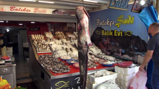 İş yerine götürdüğü balığı bir süre sergiledikten sonra satmak için parçalara ayıran Topsakal, gazetecilere yaptığı açıklamada, böyle büyüklükte bir balık tuttukları için mutlu olduklarını söyledi.