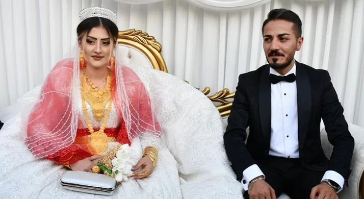 Aşiret düğününde geline 1 kilo altın, damada 5 milyonluk takı takıldı. Irak, Belçika gibi ülkelerin yanı sıra ülkenin dört bir yanından belediye başkanları, aşiret liderleri, kanaat önderleri, iş adamları ve çok sayıda misafirler Kato Dağı eteklerinde şarkılar eşliğinde halaylar çekti.